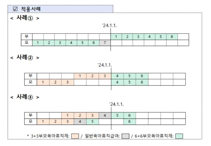 다만 2024년 1월 1일 이전에 부모 모두 6개월 이상 육아휴직을 사용했다면 6+6 육아휴직제 적용은 받을 수 없답니다.